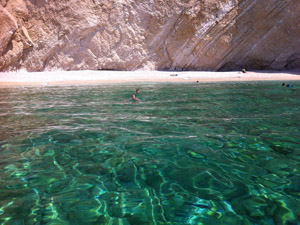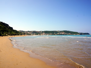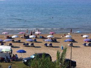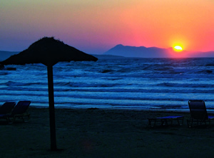 Despite having grown over the years Agios Stefanos Beach remains a charming family resort with a superb, safe and long sandy beach which slopes gently down to the water. The beach has European Blue Flag status and is clean and safe for swimming. There is beautiful countryside to enjoy around Agios Stefanos Beach, with opportunities to take a leisurely stroll or a more challenging hike. Agios Stefanos Beach has one of the most spectacular sunsets on the island; there is nothing better than watching the sun disappear behind one of the islands while having a cool long drink!